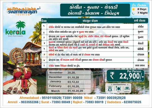 Really very great service provided by swaminarayan Tourism during trip like food related, traveling related, hotel stay, communication behaviors of tour manager, and fridom for time spend,etc.. I would like to say everyone to prefer swaminarayan Tourism for future trip. Regards, Sandip Parmar
